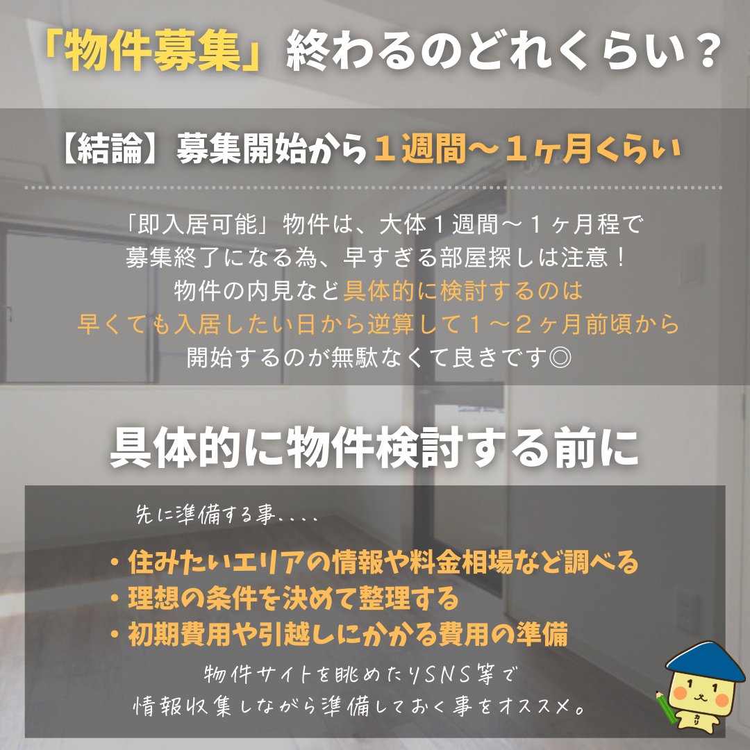 これから部屋探す予定の人へ。