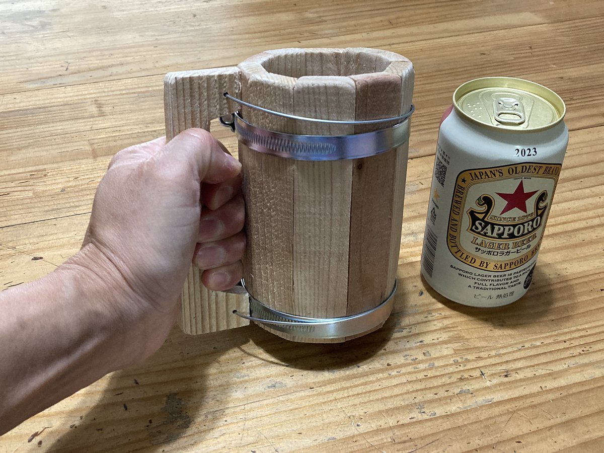 着ぐるみのままコップやジョッキのビールを飲むテスト。ゴクゴク飲めるので成功。