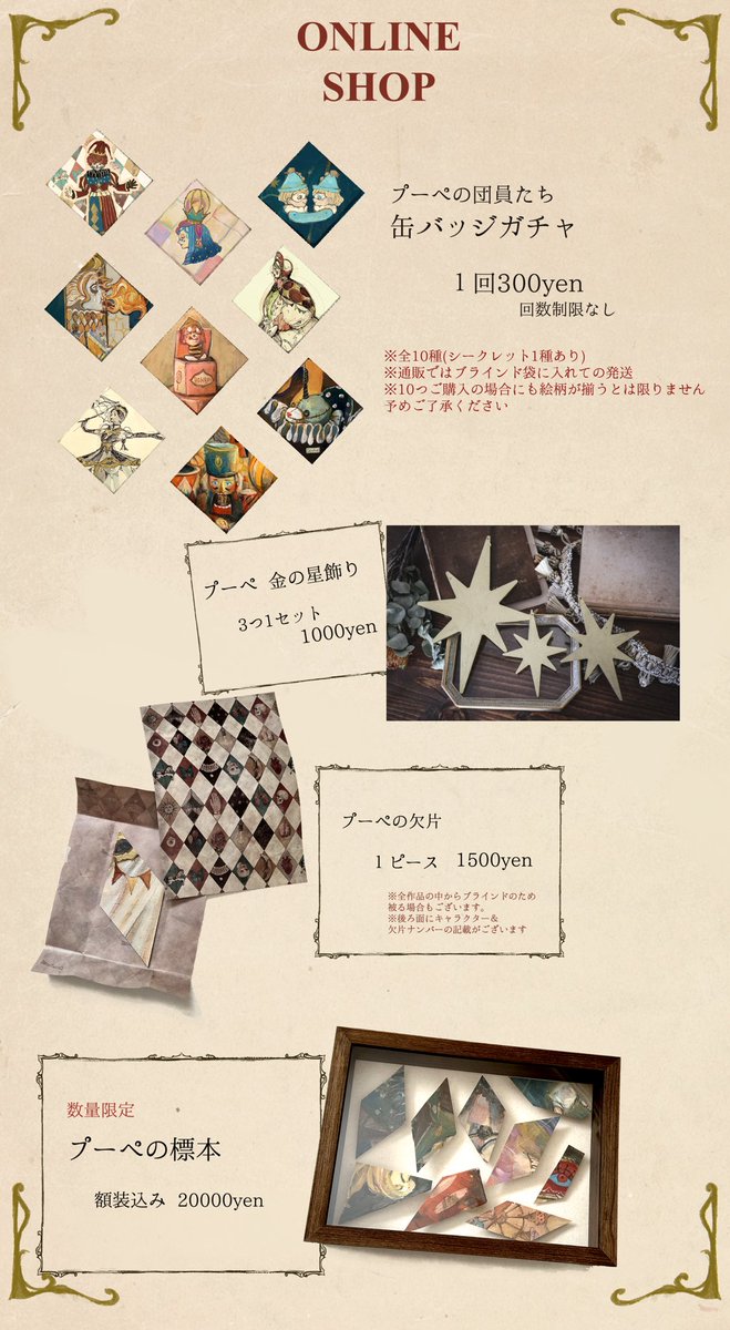 オリジナルグッズのお品書きです🎪