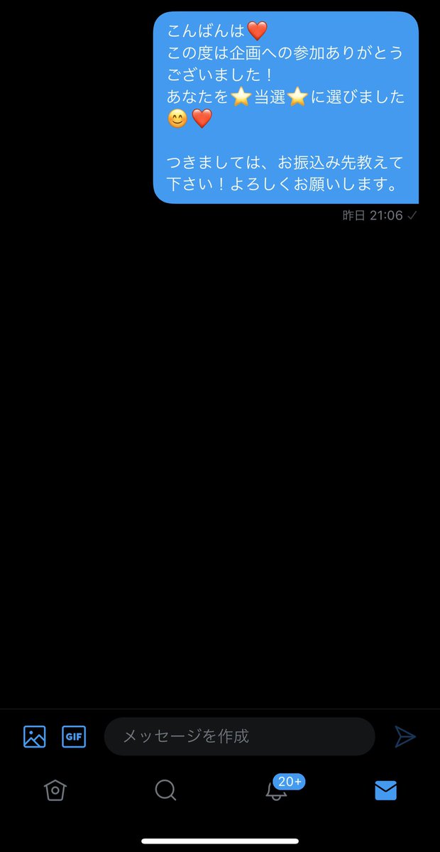 今から1名にメール送ります⭐️