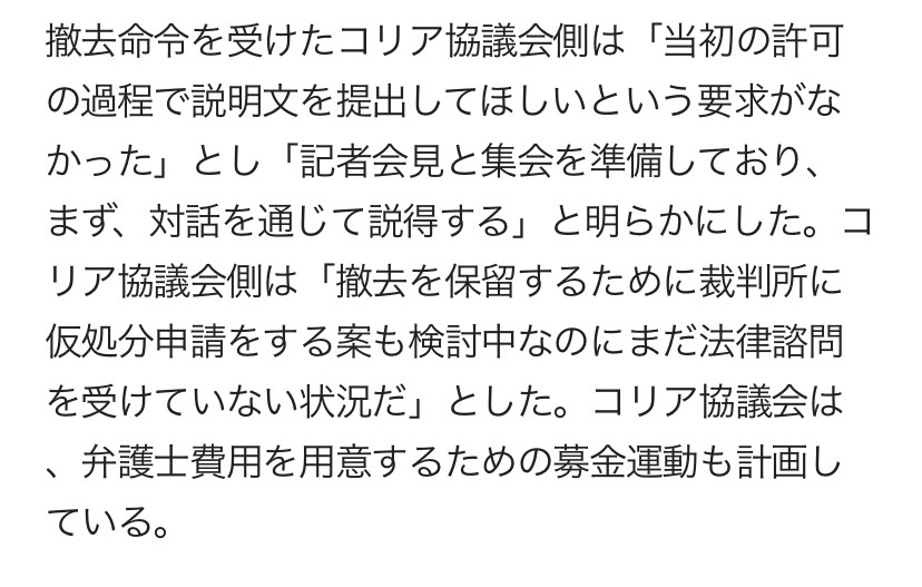 ベルリンの慰安婦像撤去命令で、設置を主導したコリア協議会が強硬手段に出た。明日、訴訟を起こして命令の撤回を要請。訴訟には数週間~数ヶ月かかると見られ、できるだけ長くゴネて撤去を免れる作戦。国連の介入も求めた。