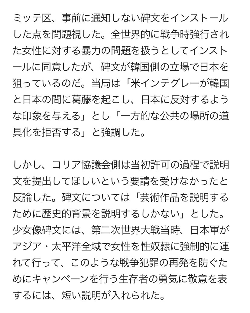 韓国政府が日本との合意に違反して、慰安婦像撤去阻止のため、ドイツ当局に圧力をかけたことを報告した。韓国が公の場で2015年の慰安婦合意に違反したと語ったのは初めて。