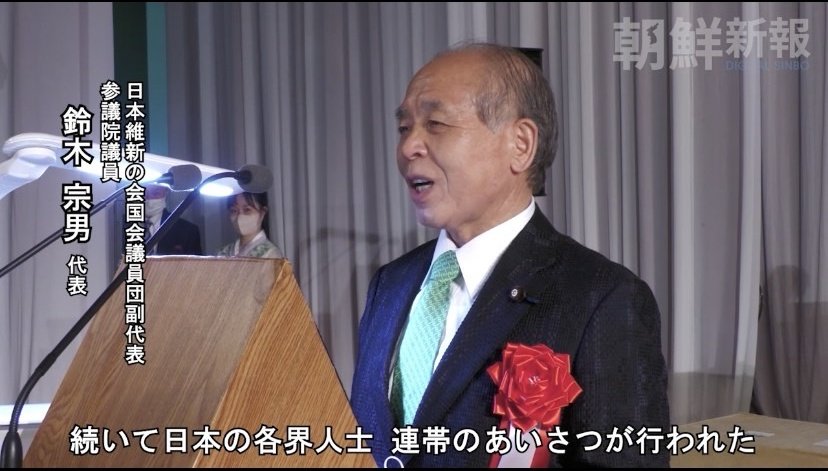 鈴木宗男議員が昨日、朝鮮総連の全体大会に出席した上に、金日成・金正日の絵の前で「いくばくかのお役に立ちたい、そう決意するものであります」と挨拶しているのですが、日本維新の会は北朝鮮の"お役に立つ"党ということなのでしょうか。。かなり怖いのですが。。
