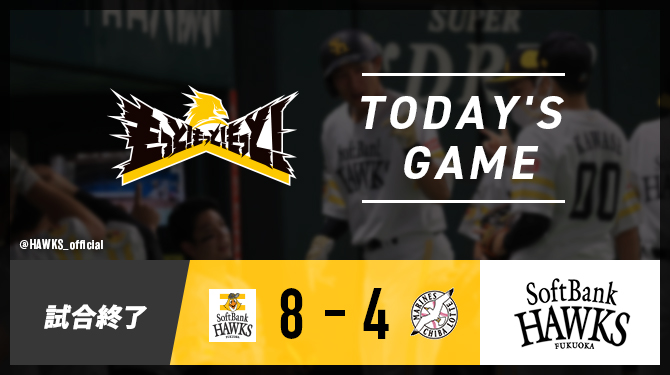 【試合終了】最終回、大関投手が抑えゲームセット!先発・千賀投手は6回を無失点に抑える好投!打線は、甲斐選手、中村晃選手、今宮選手が本塁打を放つ活躍!10安打10得点と鷹打線爆発!完封リレーで相手打線を抑え、大事な試合をいい流れで快勝しました!
