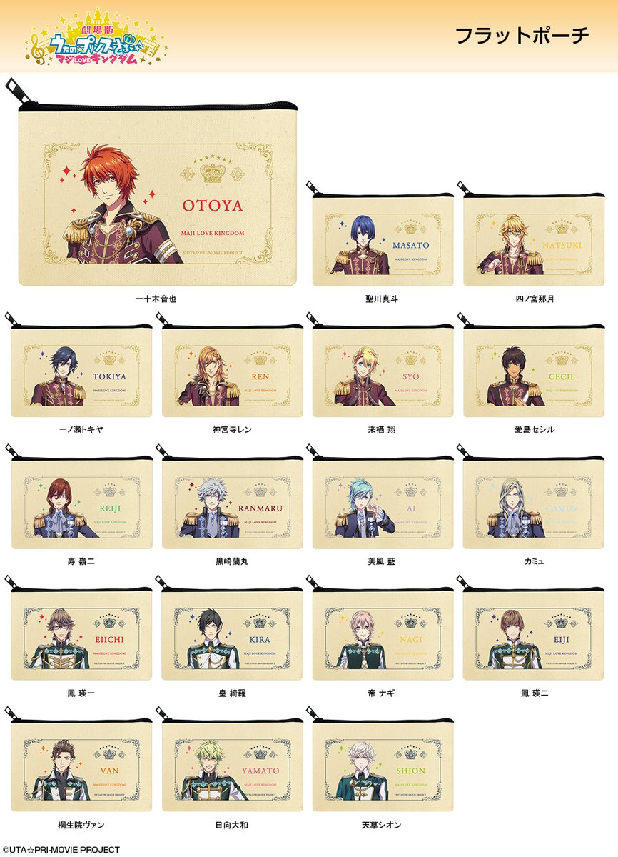 「劇場版 うたの☆プリンスさまっ♪ マジLOVEキングダム」から、コスメやステーショナリー等の収納にぴったり!実用性抜群の【フラットポーチ】新登場! #utapri dezaegg.com/products/list.…