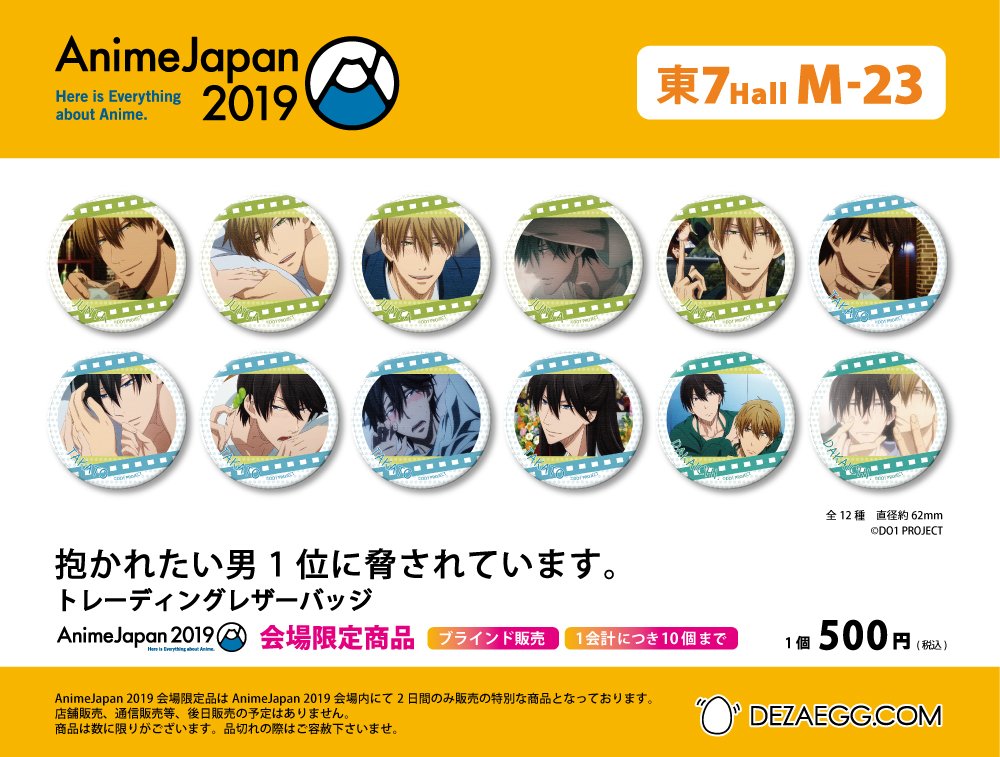【AnimeJapan 2019 会場限定品】TVアニメ「抱かれたい男1位に脅されています。」から、AnimeJapan 2019限定、トレーディングレザーバッジ登場! #だかいちアニメ #AnimeJapan dezaegg.com/lp/animejapan2…