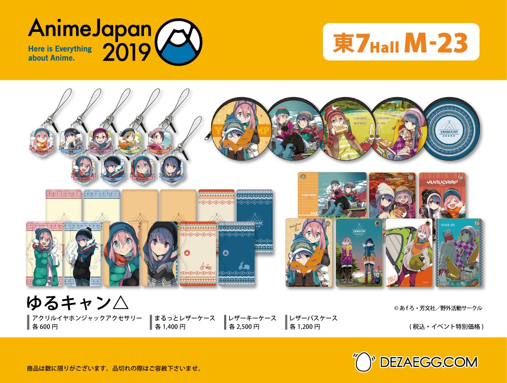 【AnimeJapan 2019 出展情報】「ゆるキャン△」商品を豊富に販売予定♪お気に入りグッズを探しにお気軽にお立ち寄りください。 #ゆるキャン #AnimeJapan dezaegg.com/lp/animejapan2…