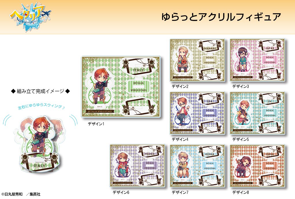 組み立てると左右にスウィング♪「ヘタリア World★Stars」より、"ゆらっとアクリルフィギュア"登場!全8種からお気に入りをセレクト☆ dezaegg.com/products/list.…