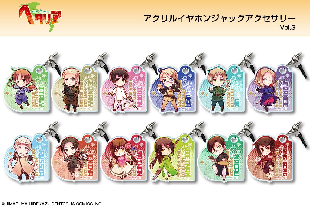「ヘタリア Axis Powers」より、【トレーディングアクリルイヤホンジャックアクセサリー】vol.3登場!集めて楽しい12種入りコレクションBOXです。本日よりご予約受付開始! dezaegg.com/products/detai…