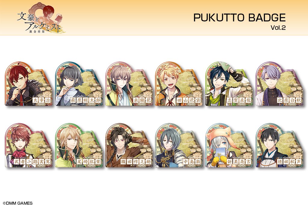 「文豪とアルケミスト」より、【ぷくっとバッジコレクションBOX】vol.2も登場です♪トレーディングBOX仕様で集めて楽しい全12種入り☆ #文アル dezaegg.com/products/detai…