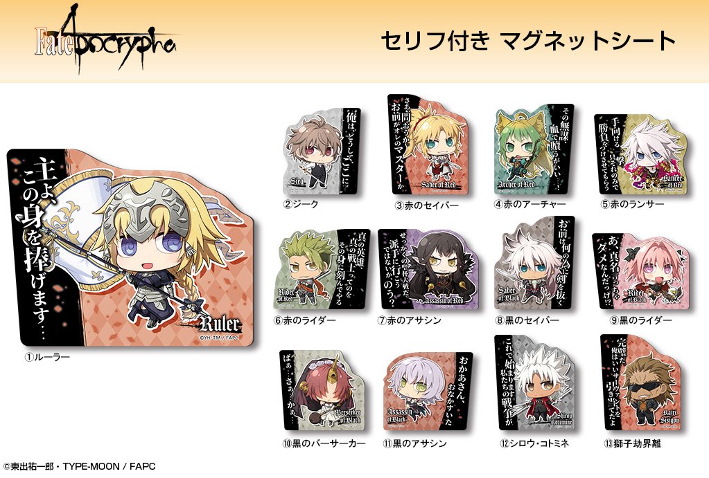 TVアニメ「Fate/Apocrypha」より、セリフ付マグネットシート登場!作中のセリフが楽しい13種のラインナップ! #アポクリファ dezaegg.com/products/list.…