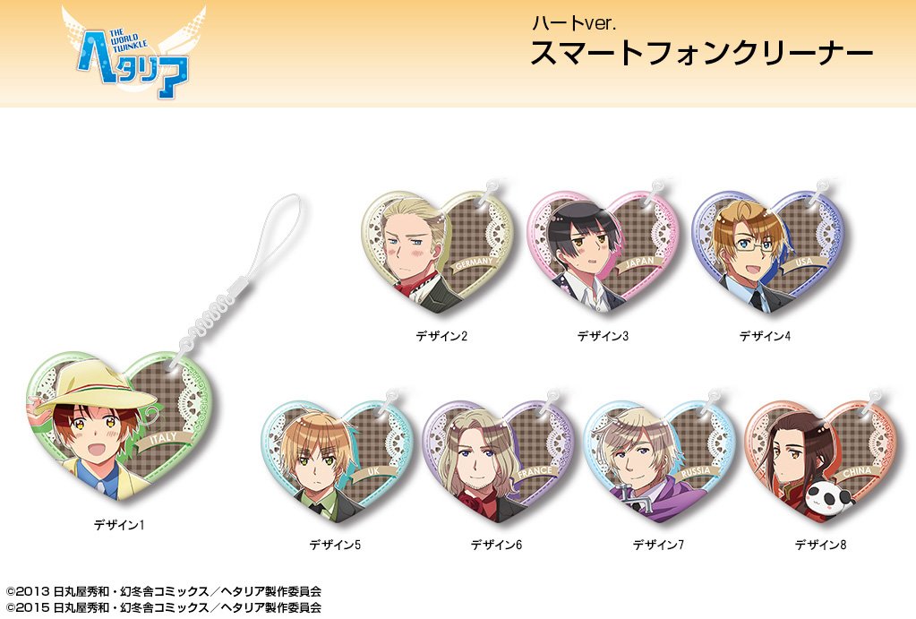 「ヘタリア The World Twinkle」から、ハート型スマホクリーナー登場!お気に入りのキャラと一緒にスマホ画面をキレイに♡ 選べる8種類☆ dezaegg.com/products/list.…