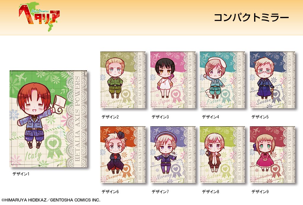 「ヘタリア Axis Powers」から、コンパクトミラー新登場!第一弾として全9種発売決定!お気に入りのキャラクターをお選び頂けます。 dezaegg.com/products/list.…