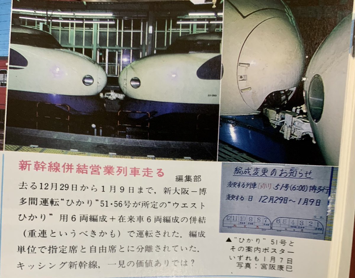 JR時代にも併結ひかりが走ったのね😅しかも片方がウェストひかりでもう一方が在来車💦(鉄道ファン89年3月号)