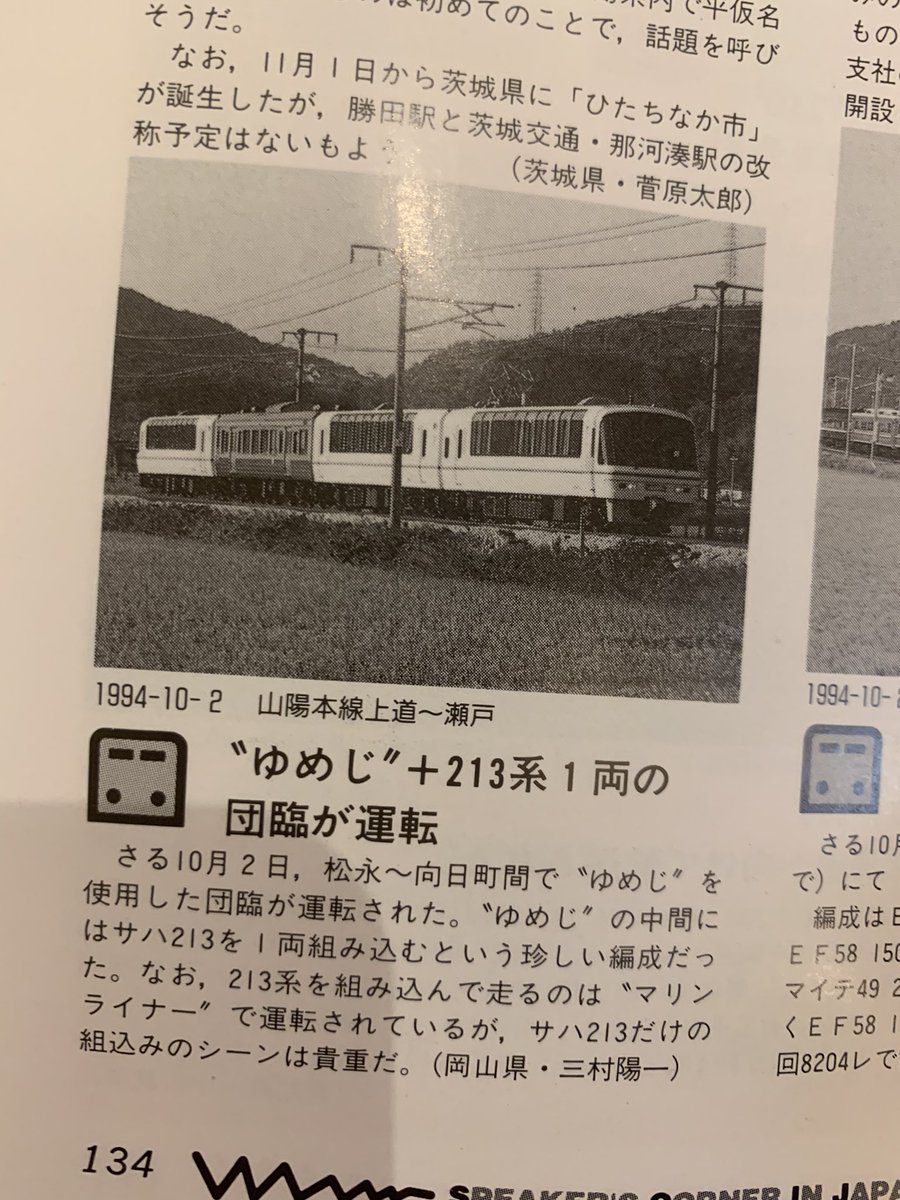 ゆめじ+213系サハ1両??? (鉄道ダイヤ情報94年12月号)