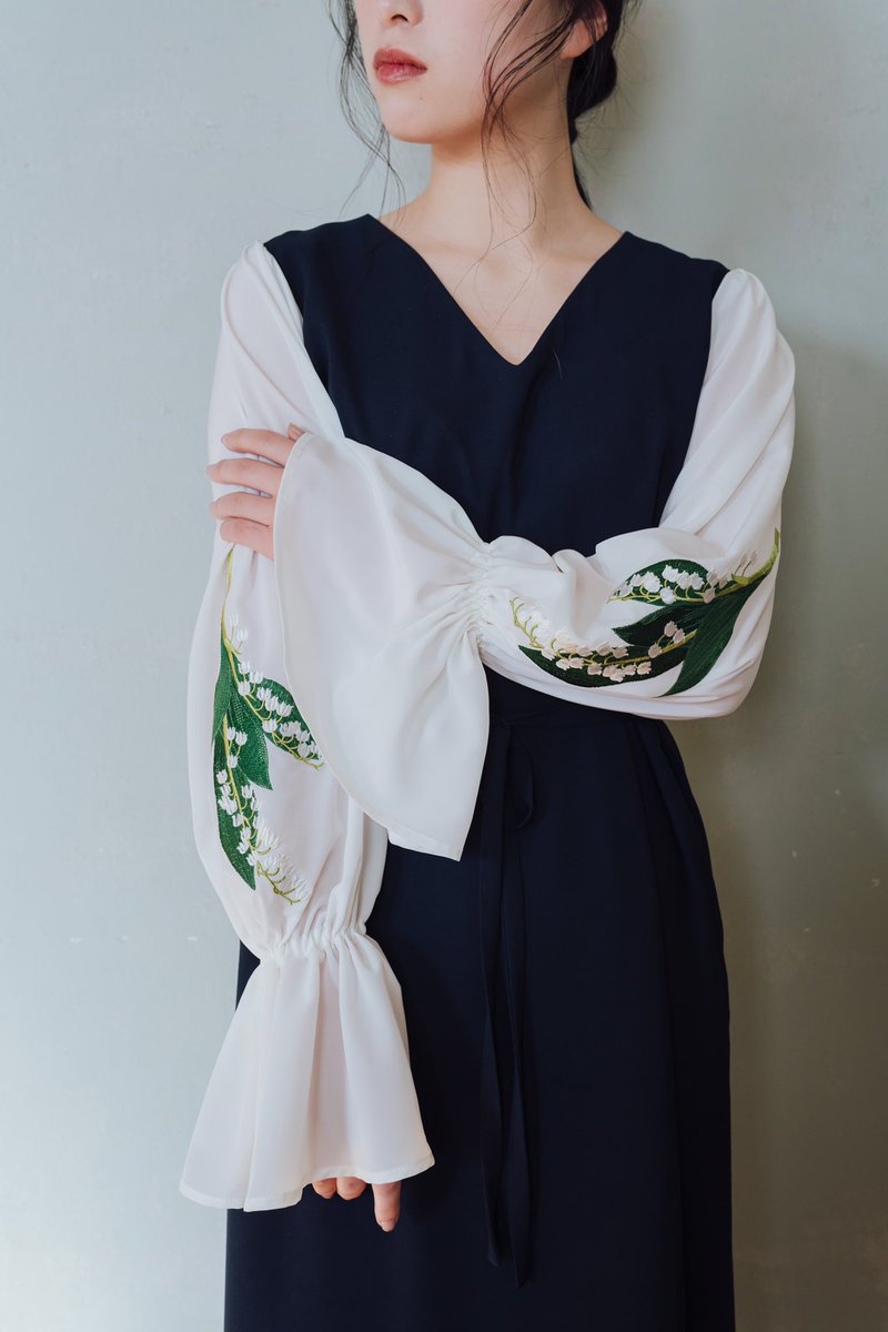 桜、ハクモクレン、鈴蘭が薄手の袖にひらりと咲き誇る今回の春の三部作、全貌を見たい方はぜひオンラインストアへ。