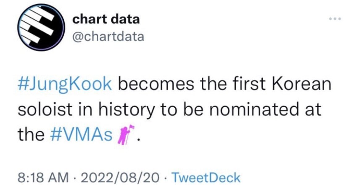 VMAs has started following Jungkook's Instagram account following his nomination for Song Of The Summer in #VMAs