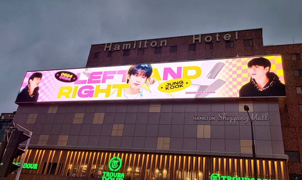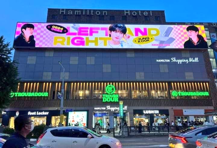 Jungkook's LED screens advertisement in MEGABOX Signature COEX, South Korea by Fantoo app for winning their poll for 'Best Visual Male Idol' with a whopping 54.9M votes.
