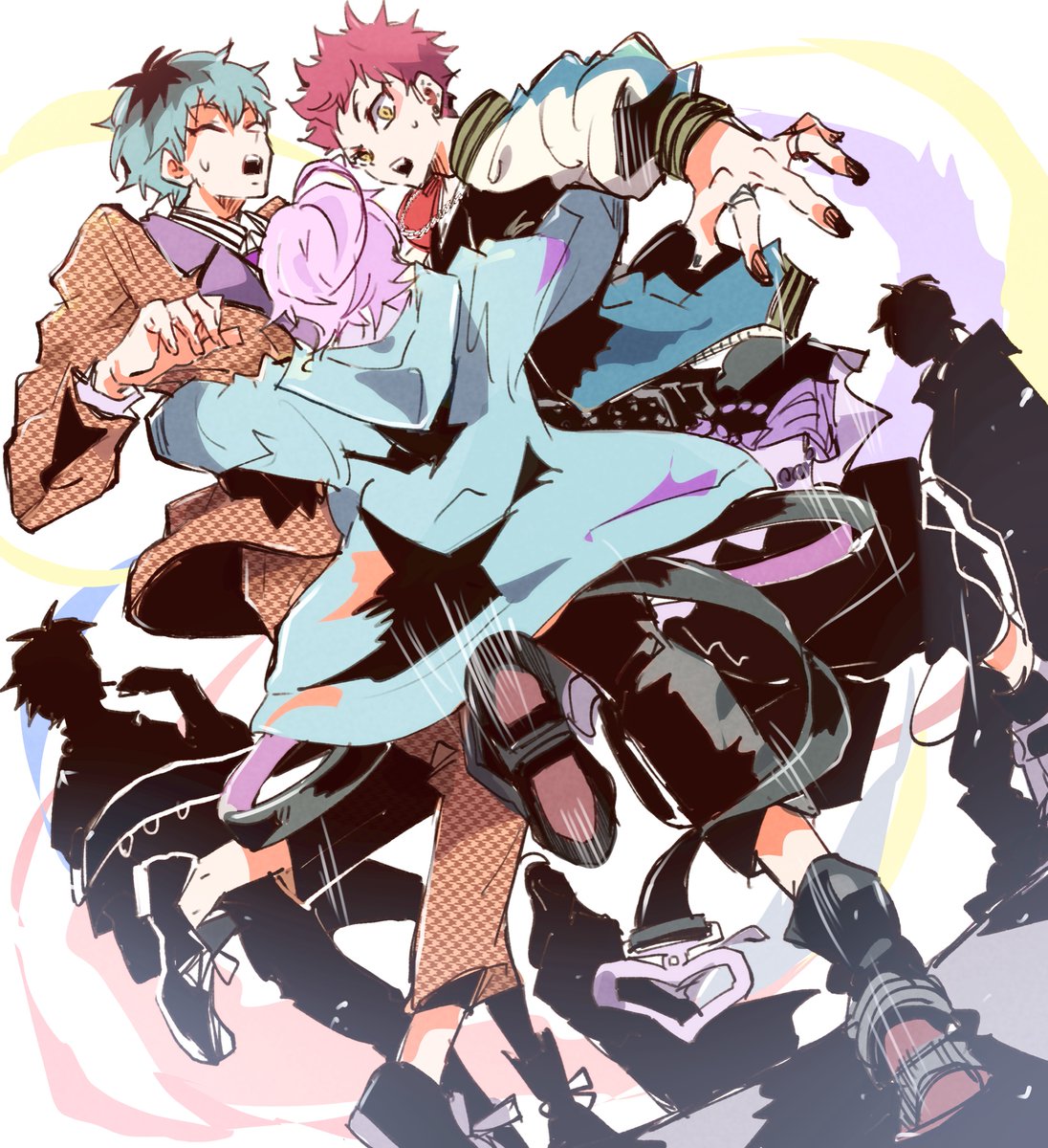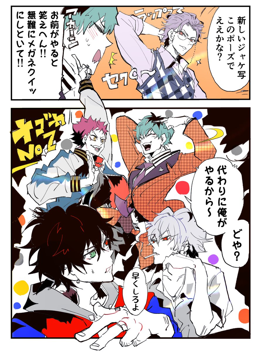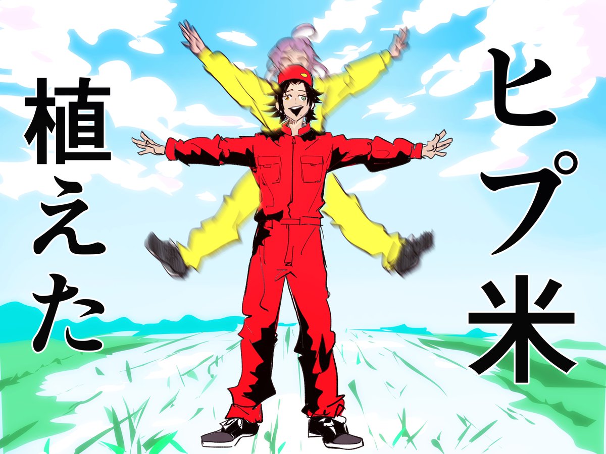 今日世界の中心で撮ってきた背景を加工したこのイラストをポスカにして新刊のノベルティにしたいな~と思ってます💜❤️💙🧡