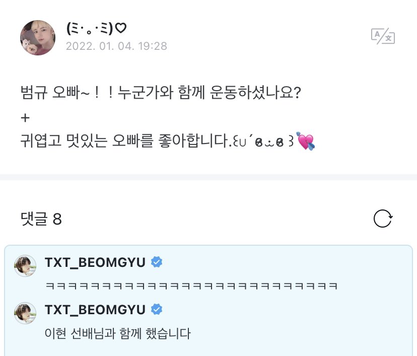 👤: beomgyu~! who did you work out with?