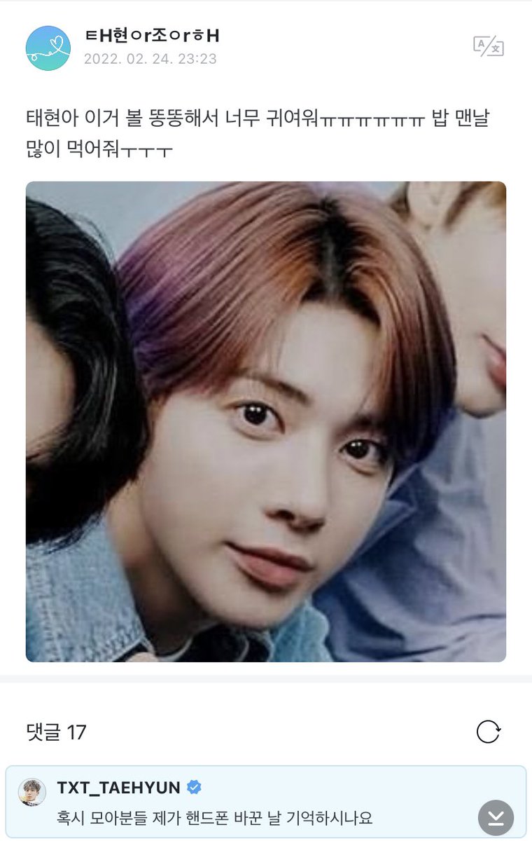👤: taehyun-ah you look so cute with your chubby cheeks ㅠㅠㅠㅠplease eat lots