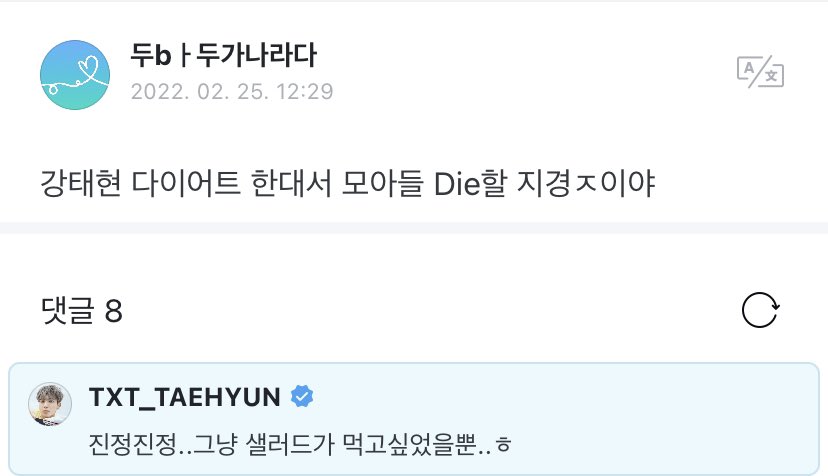 👤: kang taehyun said he’s going on a diet.. moa’s are gonna d!e