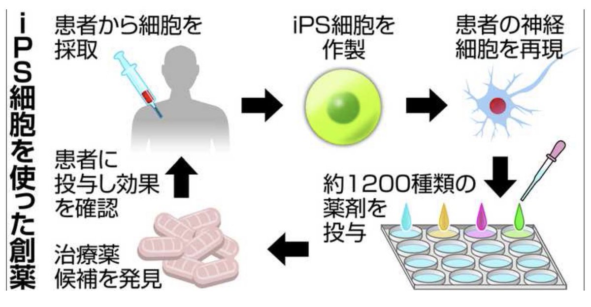 今回、慶應大はiPS細胞を使用して作ったALS患者の細胞に、約1200種類の薬剤を投与。… twitter.com/i/web/status/1…