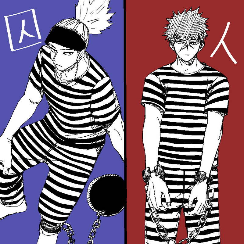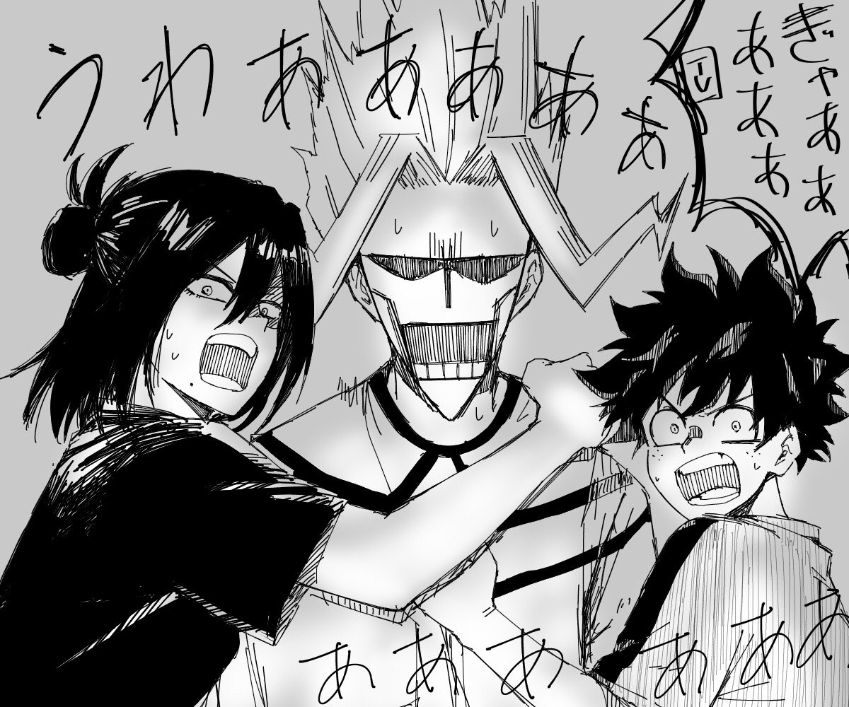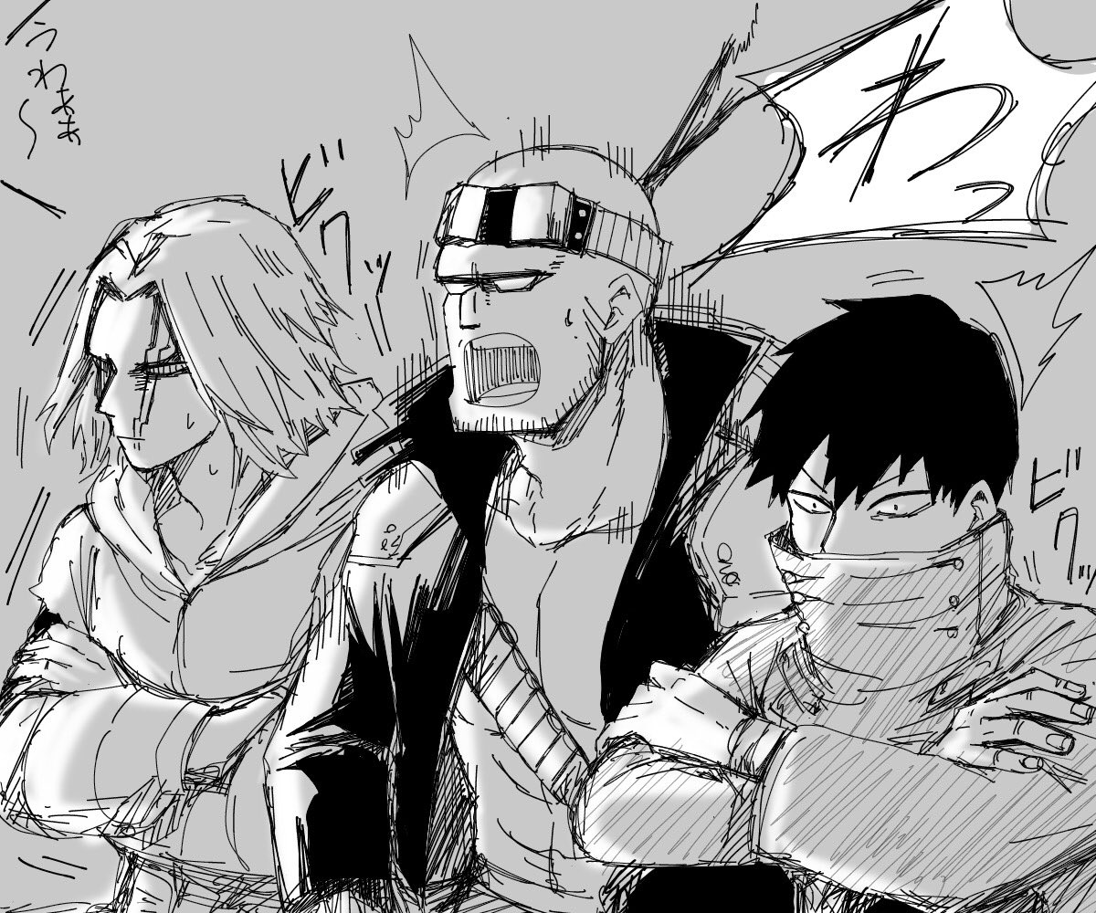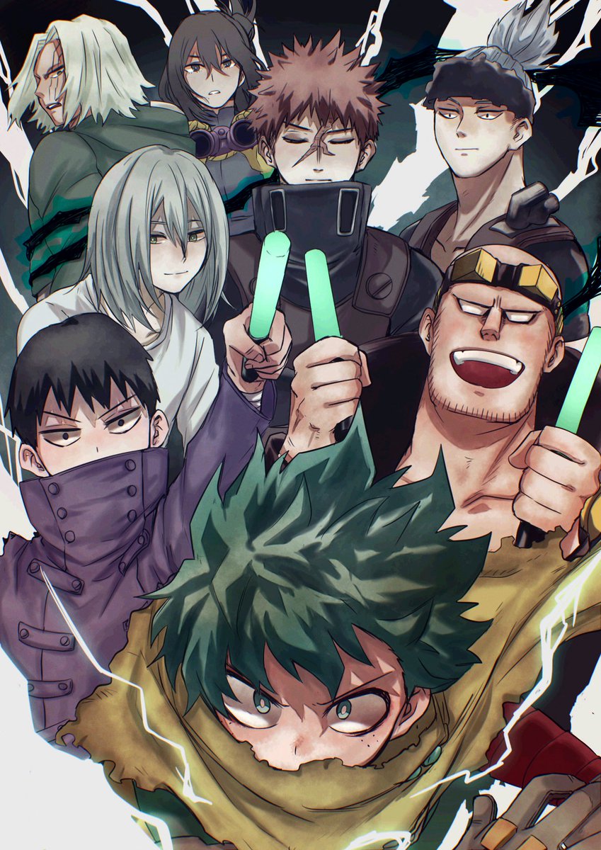 「デクさんのライブ(戦闘)でデクさんに対して自分は理解者だと思って疑わない二代目(後方先輩面)とそれに付き添う三代目と与一、最前でペンラ振りまくる古参の万縄先輩と煙くん、そして黒鞭で連行されている四ノ森さん」です!リクエストありがとうございました!
