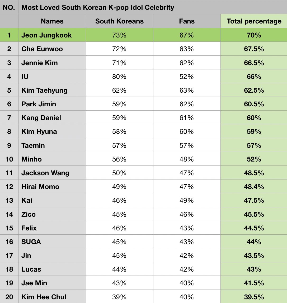 [ARTICLE] 210626 Top 10 Of The Most Loved Kpop Idol in South Korea Ranking In The Past 3 Years