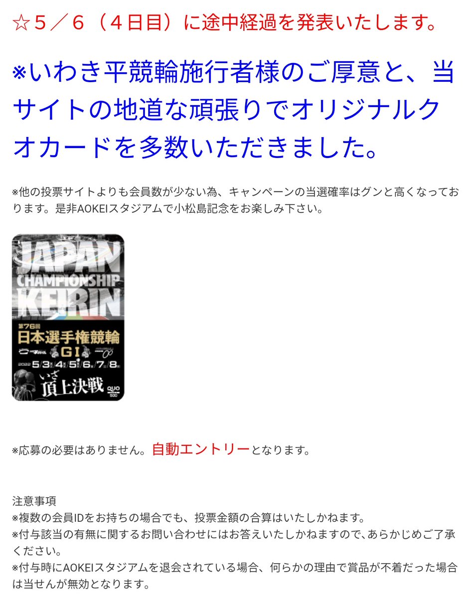 #京王閣競輪 #AOKEIスタジアム Twitter #キャンペーン