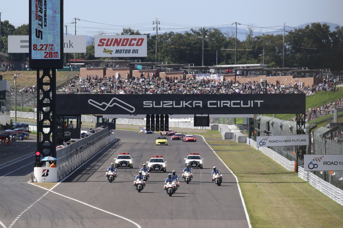 2022 AUTOBACS SUPER GT Rd.5 FUJIMAKI GROUP SUZUKA GT 450km 決勝レーススタート前に三重県警察の車両の先導で交通安全啓蒙パレードを実施いたしました!