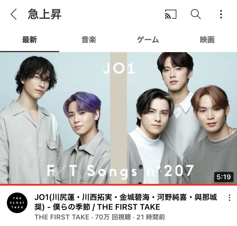 凄いな…急上昇に3つも入るのチャンネルが違うのもだけどこうして同じタイミングで出ててJO1を見て知ってもらえるきっかけになるかもなのも本当に感謝だよね。たくさんの方の目に留まりますように。