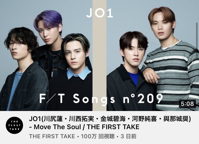 #JO1(#川尻蓮 ・川西拓実・金城碧海・河野純喜・與那城奨) - Move The Soul / THE FIRST TAKE youtu.be/EXTBITkyEGY