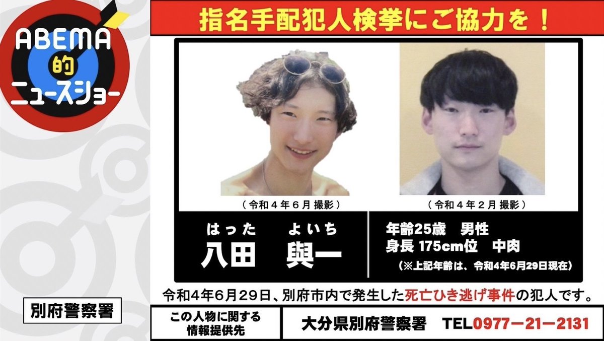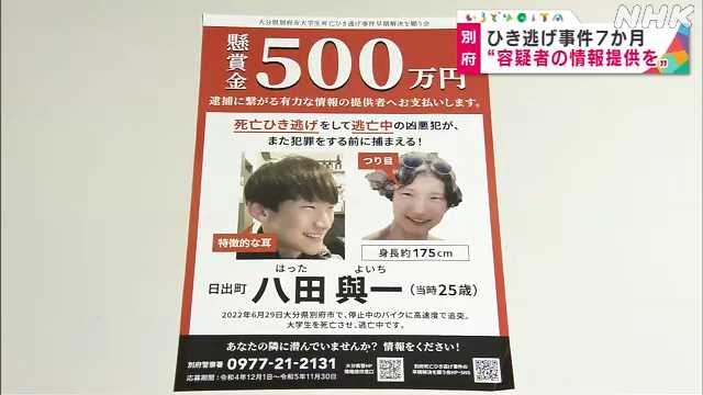 【逃亡中】別府市大学生死亡ひき逃げ事件