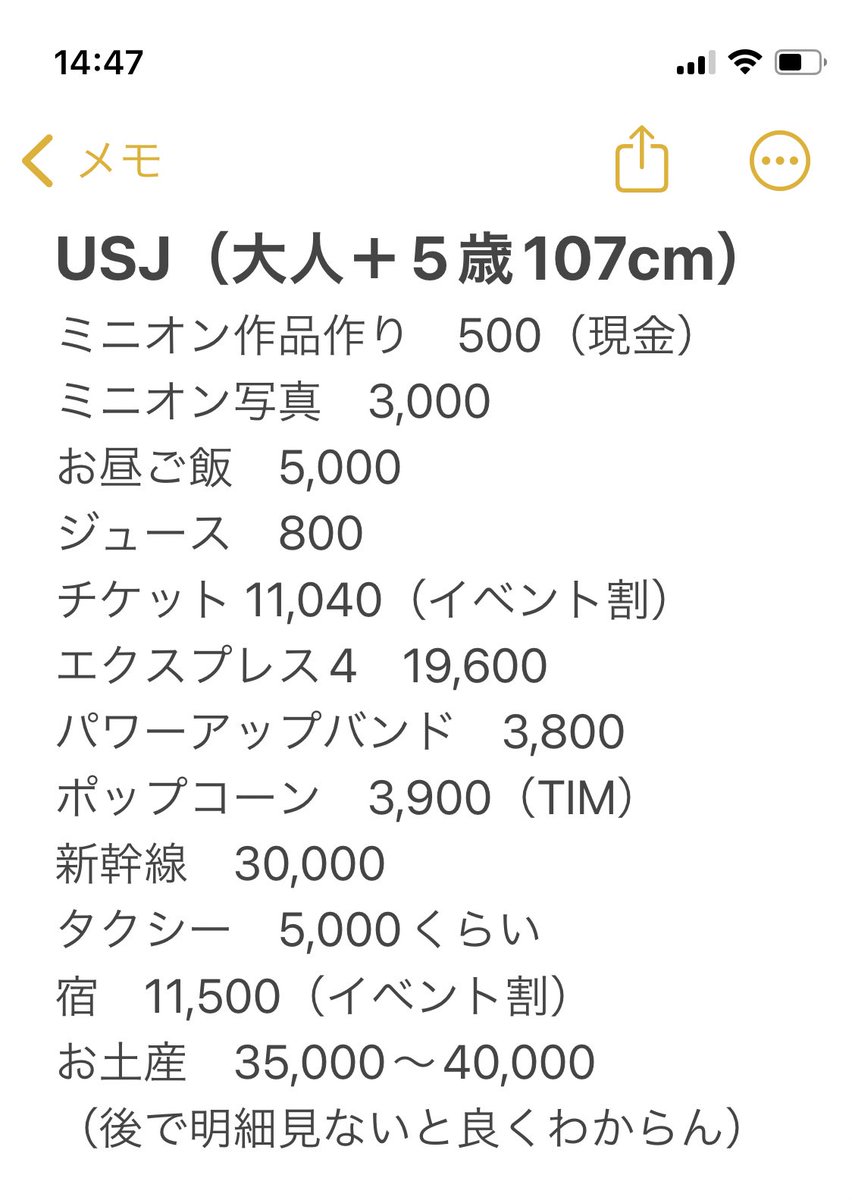 11月のど平日、大人1人&5歳児1人で約10万(お土産代除く)でした🫠 園外での食事代も含めたら2人で15万コース😇夫と下の子連れて行ったら20万超えてたと思います💸