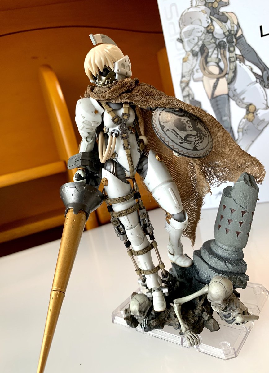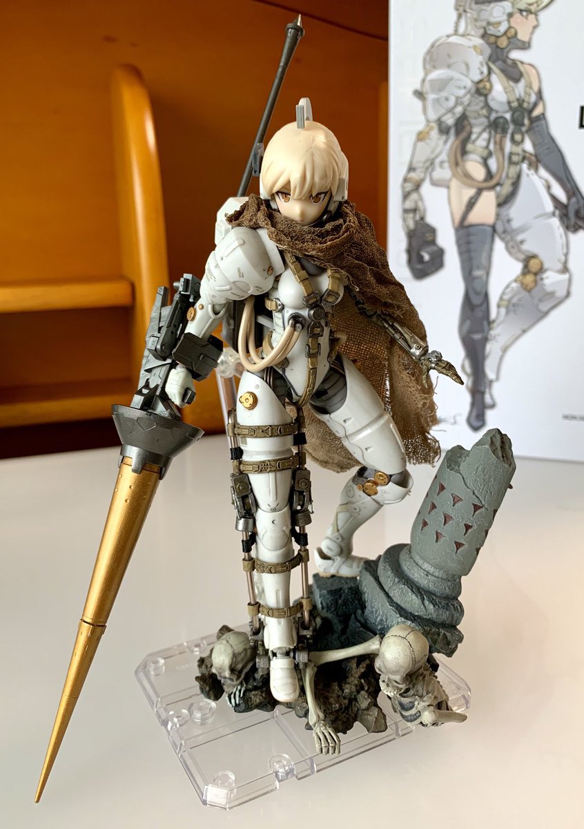 バインダーガン背負わすのを自分もやってみたかったのでホーネットの強化装備という事で。バトルアームアームズで繋いでいるので可動します。尻尾はギラギラーガ。スカルマスクはルーデンスの余ったやつ。 #メガミデバイス