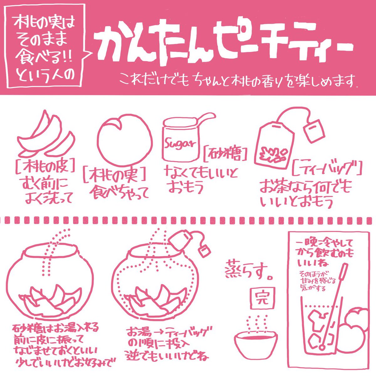 昔に載せたピーチティーの画像と、恐ろしくズボラな桃皮ピーチティーの話…(レシピと書くのもはばかられるレベル)