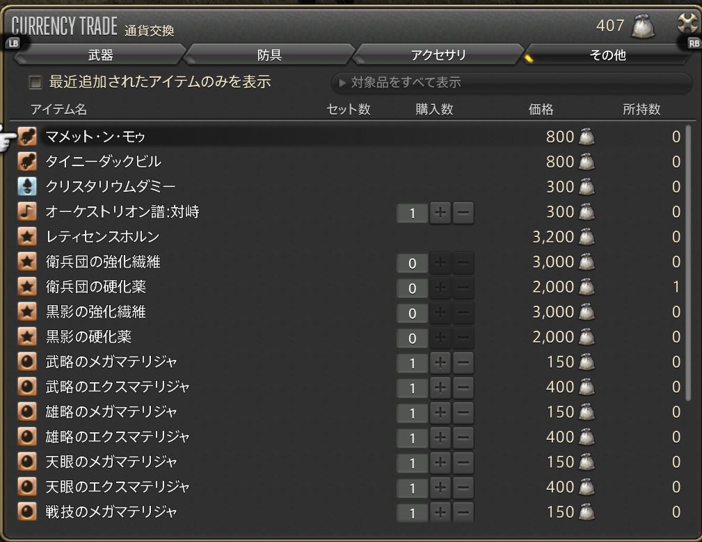 5.3からモブハントの戦利品で奇譚防具強化できるようになってたの知らなかった(´゚д゚`) クリスタリウムのサイル(X9.4:Y9.5)で交換できる 防具は戦利品3000 帯・アクセは戦利品2000 モブハンツアー周回せねば(*'ω'*)