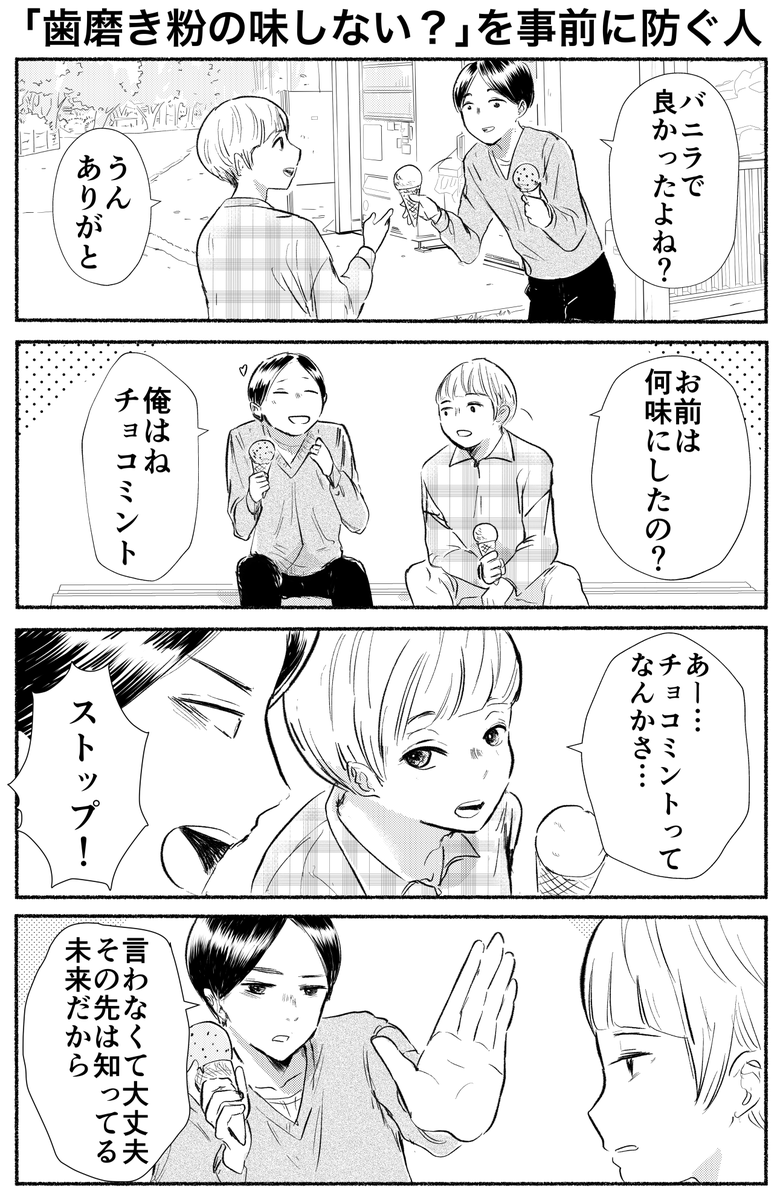 4コマ「歯磨き粉の味しない?を事前に防ぐ人」