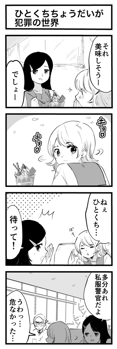 4コマ「ひとくちちょうだいが犯罪の世界」