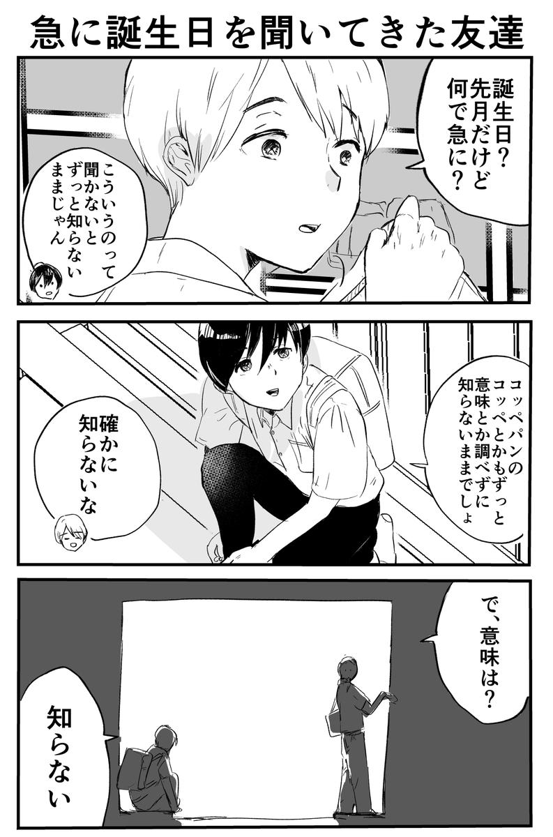 3コマ「急に誕生日を聞いてきた友達」