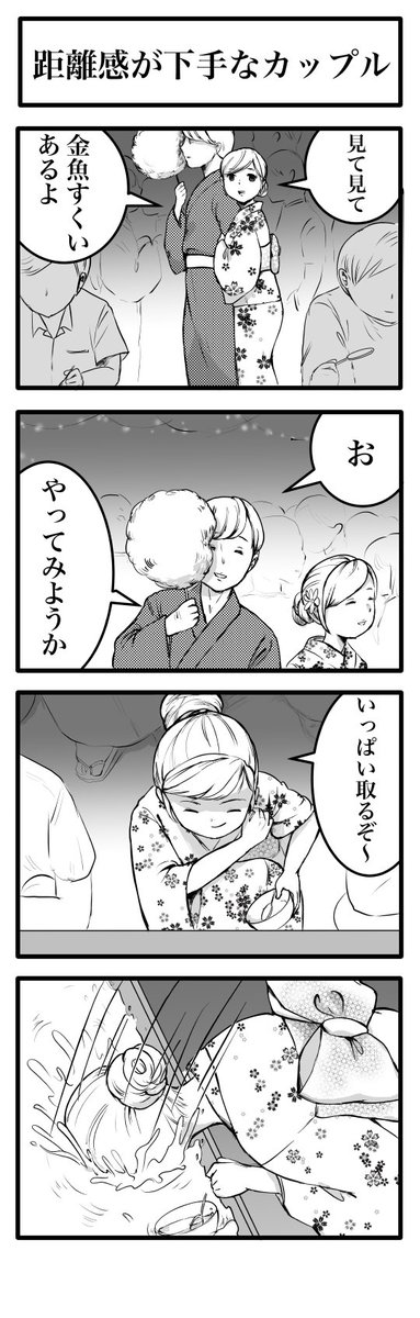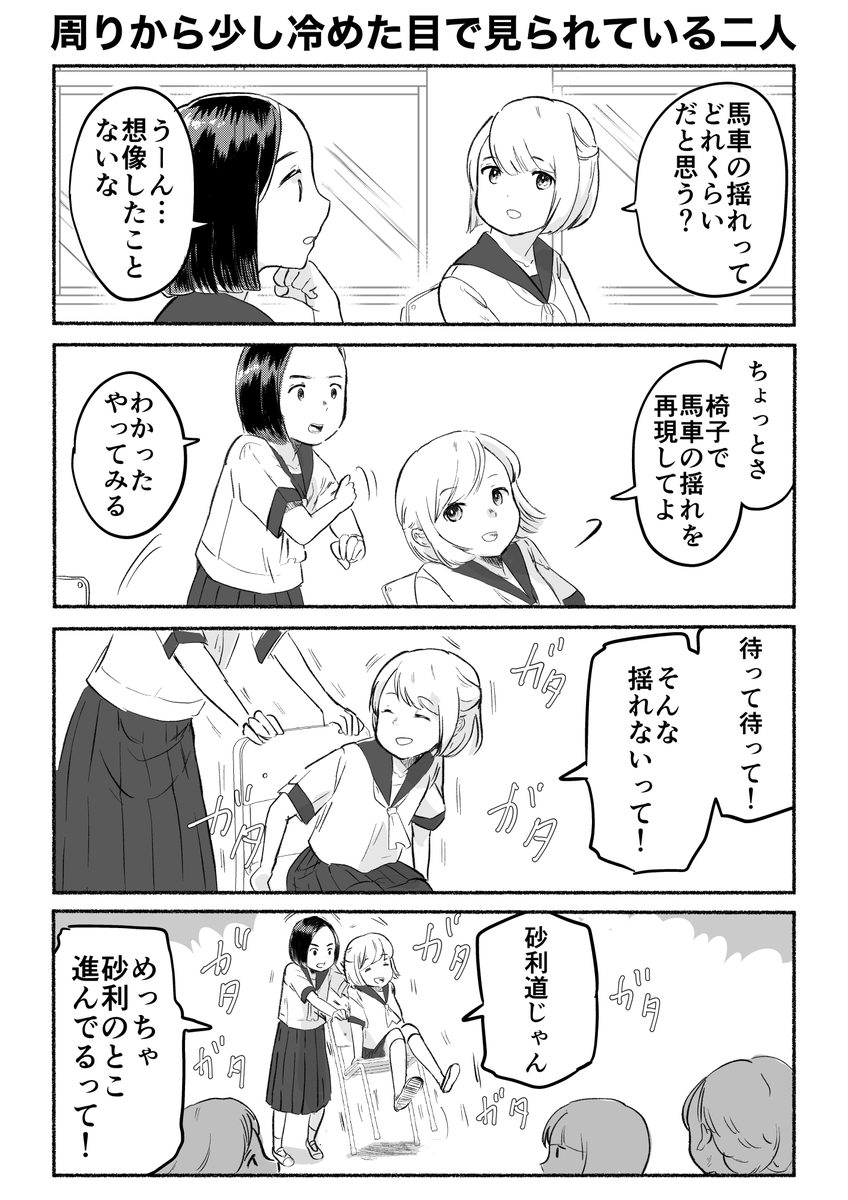4コマ「周りから少し冷めた目で見られている二人」