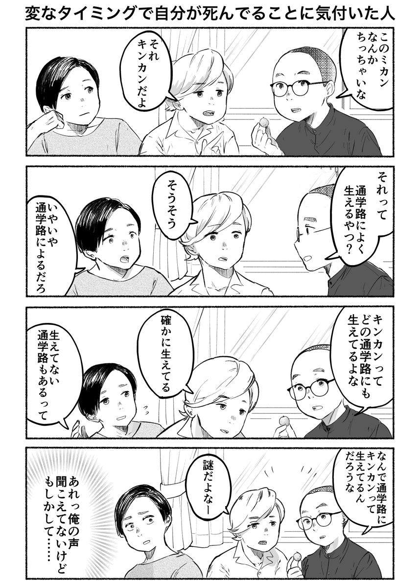 4コマ「変なタイミングで自分が死んでることに気付いた人」