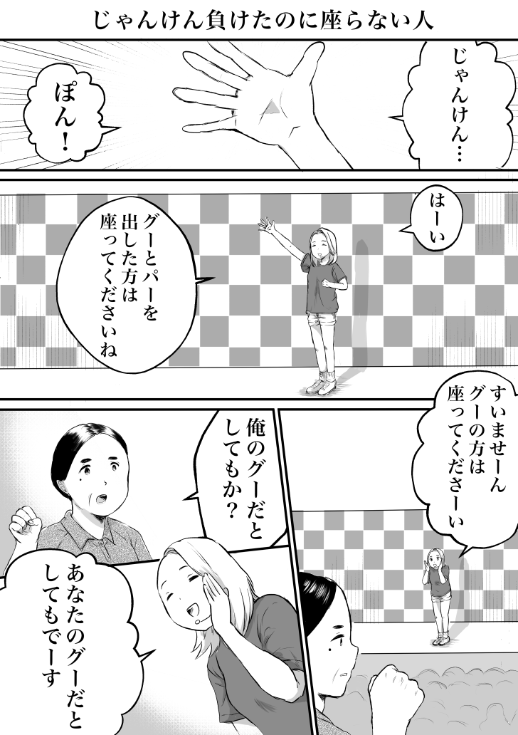 1ページ漫画「じゃんけん負けたのに座らない人」(再掲)
