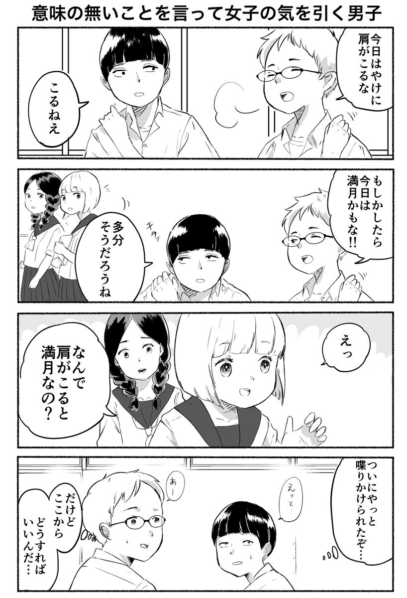 4コマ「意味の無いことを言って女子の気を引く男子」