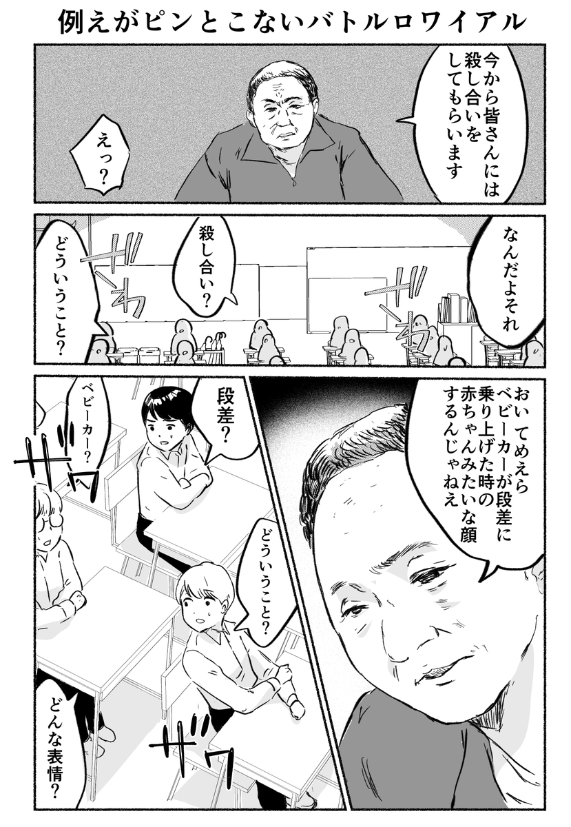 4コマ「例えが弱いと思っただけでタイムリープの能力を使う人」