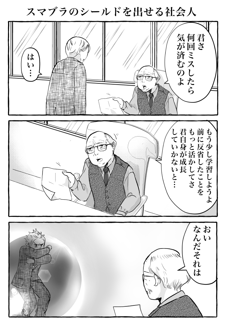 3コマ「スマブラのシールドを出せる社会人」(再掲)