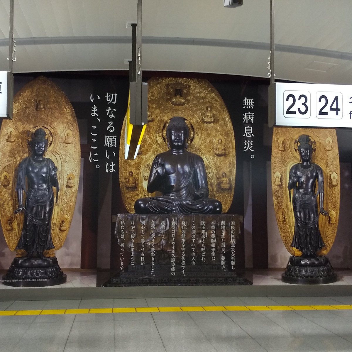 品川駅構内に薬師三尊出現。