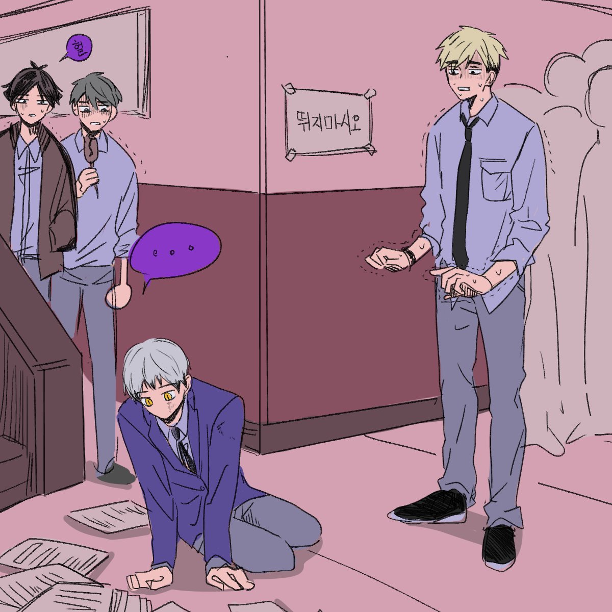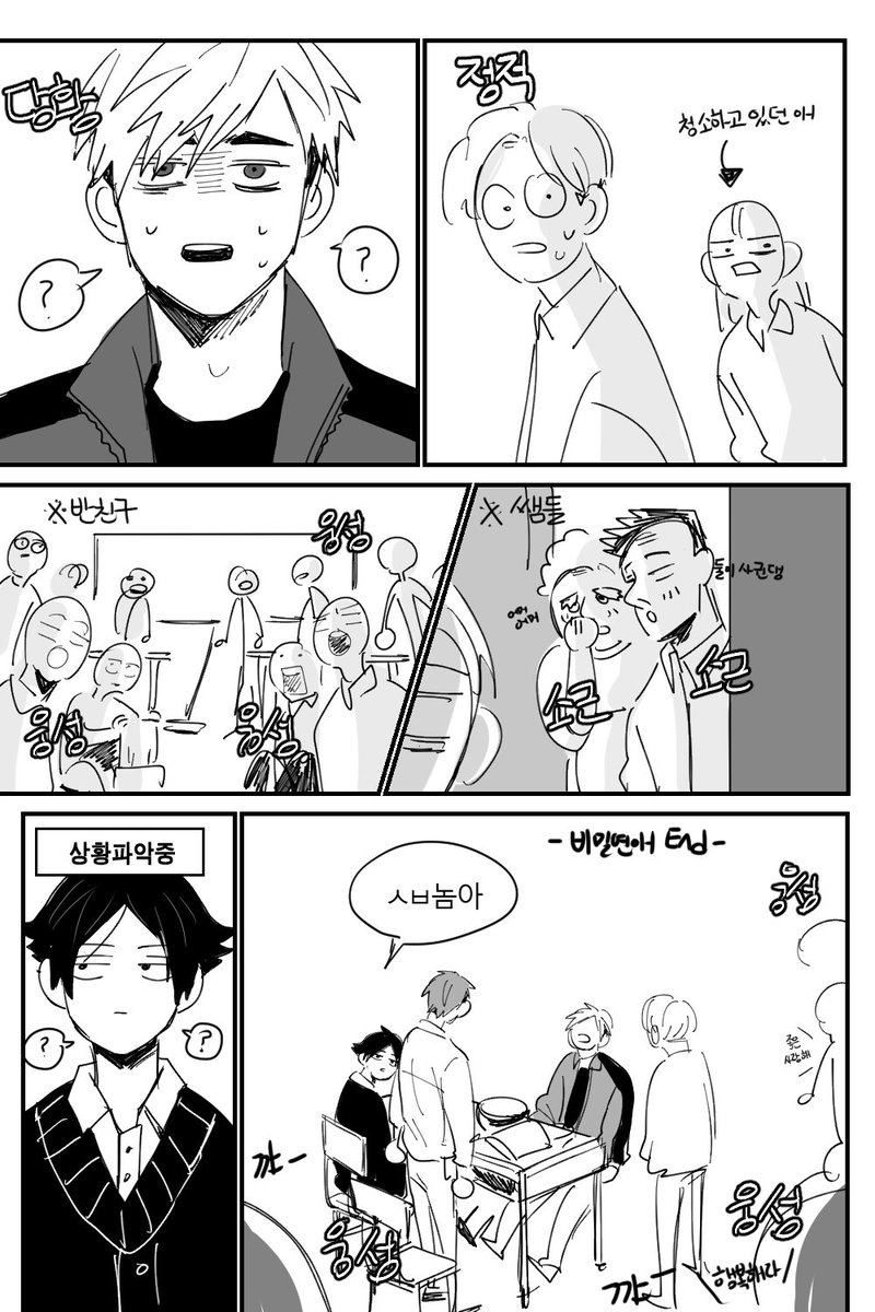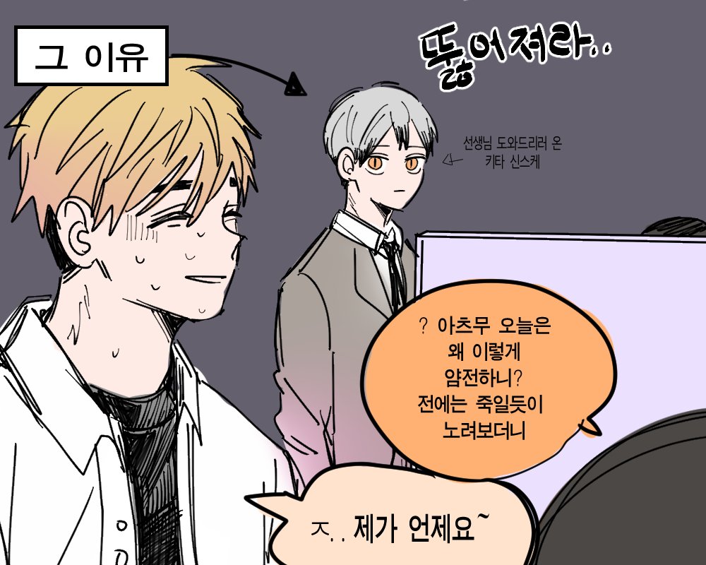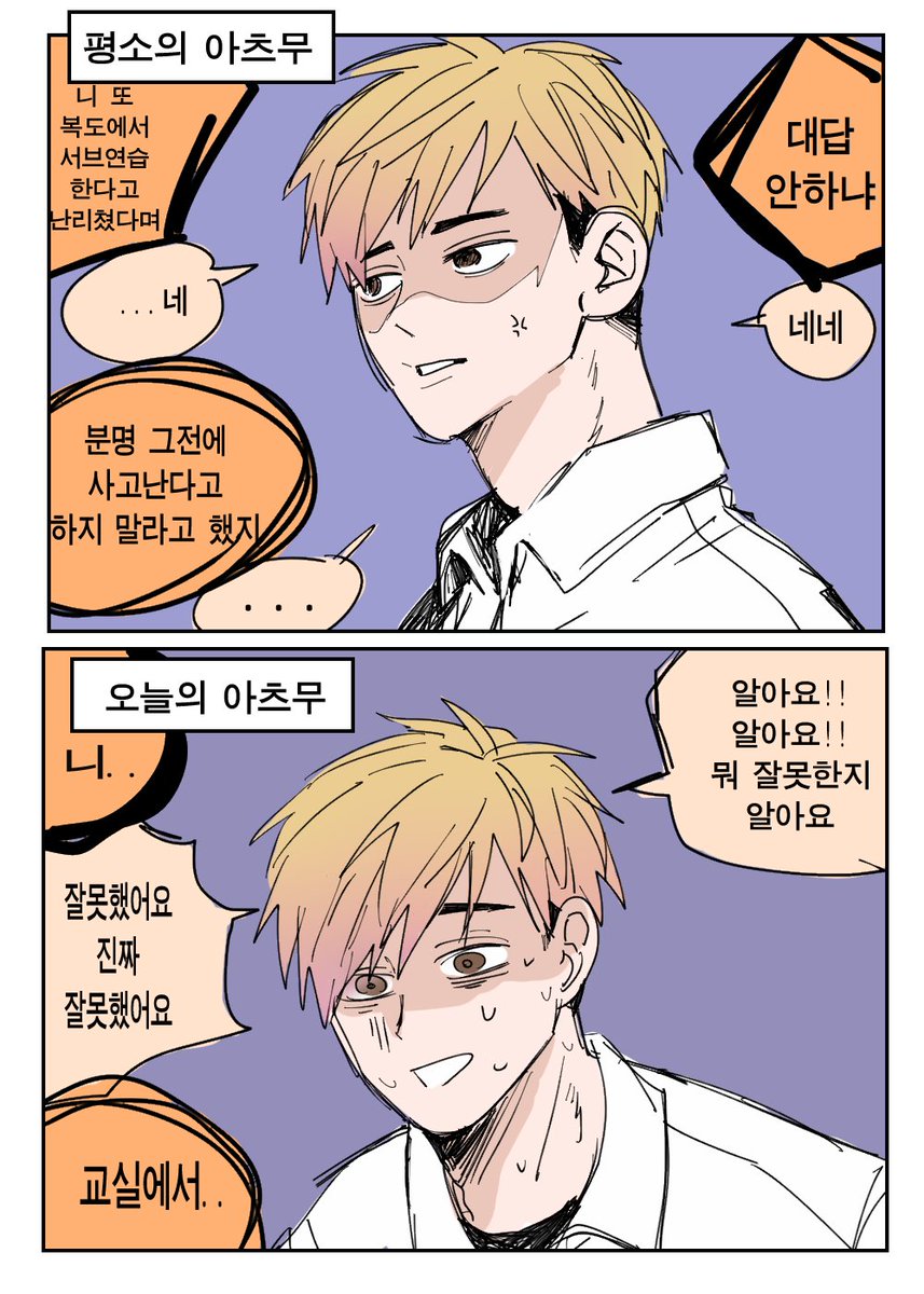 (웅성웅성) A:무슨 일임 B:아츠무가 복도에서 뛰다가 3학년 선배랑 부딪혔대