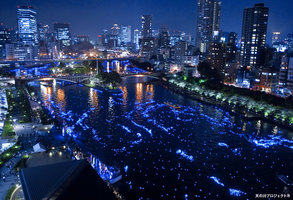 天満橋〜北浜周辺の大川では7/7(日)に「令和OSAKA天の川伝説」が開催されます。川面に広がる光と水の幻想的な光景は、まさに地上の天の川。素敵な七夕の夜になりそうですね。